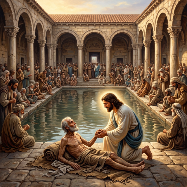 耶穌在耶路撒冷過節,祂大可以去富麗堂皇的聖殿,但祂卻繞道來到了這個充滿屎尿臭味、充滿絕望呻吟的畢士大池。